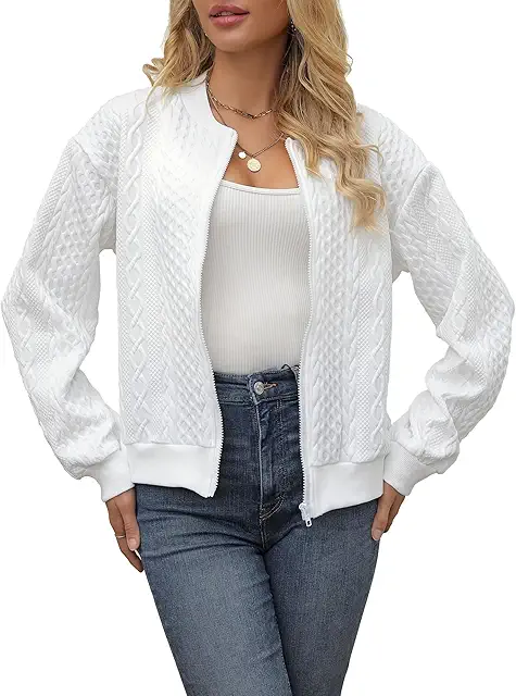 Be the first to review “Women’s Polyester Solid Color Long Sleeve Zip Up Bomber Casual”